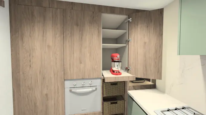 Diseñamos cocinas que combinan funcionalidad, estilo y eficiencia. Cada centímetro cuenta: distribuimos el espacio según tus hábitos, integramos almacenamiento inteligente, seleccionamos materiales duraderos y te ayudamos a visualizar todo con un render 3D antes de fabricarlo. Ya sea que busques algo moderno, minimalista, rústico o elegante, tu cocina será tan única como tú.